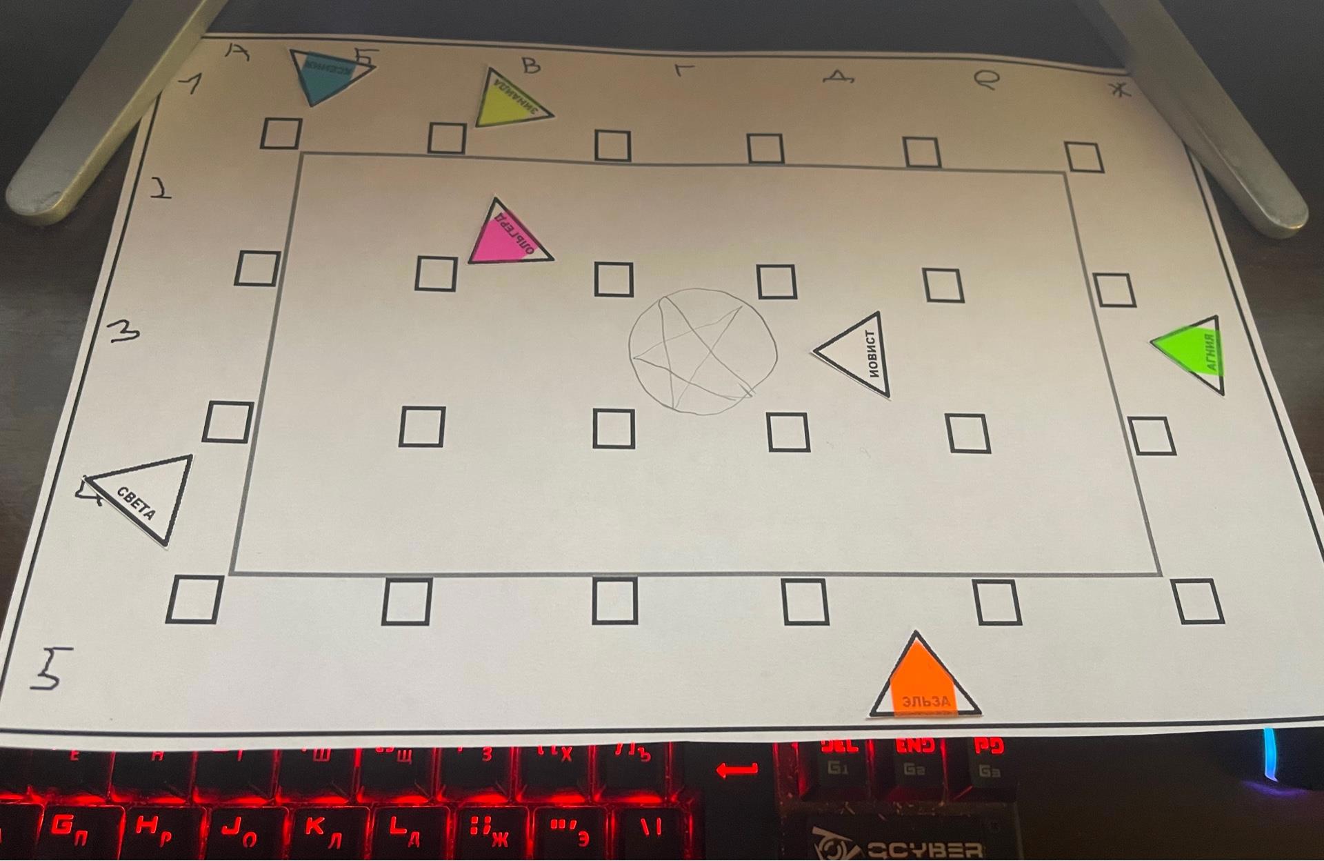 Автор: Сергей СизаревДожил :( Использую визуализацию положения персонажей на карте, чтобы облегчить себе описание их боя на магической арене (фото ниже). Кто ещё такую ересь использует при описании боёвки?