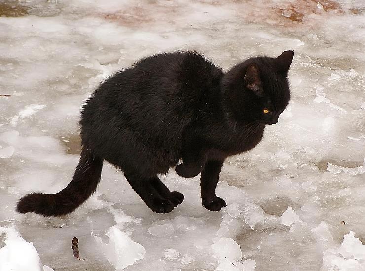 Зимний Крым бывает всяким, и шаблонное представление о мягких - южных - зимах относится по большей части к Южному берегу, там, где пальмы и магнолии, а вот на противоположных друг другу краях - нашем керченском востоке и евпаторийском западе зимой бывает вполне себе сурово. На фото это видно не всегда, бывает стоит серьезный холод, дуют ветры, а снега нет. А бывает он есть. Еще часто бывает, когда снег подтаивает при плюсе, а назавтра схватывается ледяной кашей при новых морозах. На первом фото - снежная зима в Евпатории, первая зима чёрной кошечки (и непонятно, куда-то лапки-то ставить, оно такое холодное)