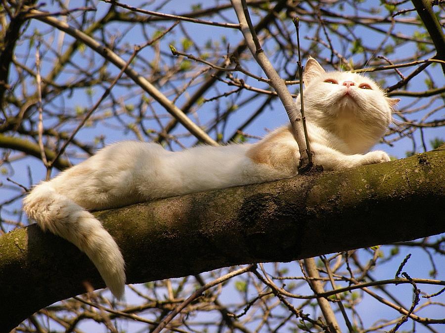 Коты-цветы - как без них. У каждого, между прочим, есть своя любимая ветка на собственном любимом дереве.