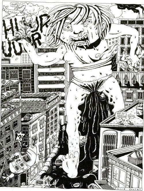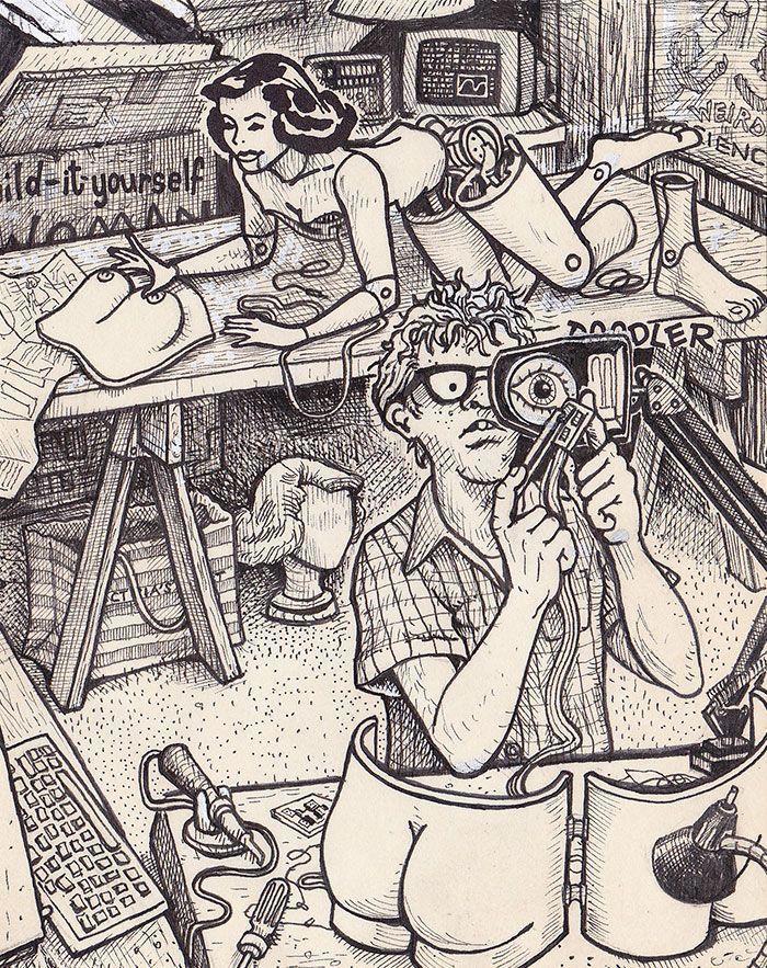 В противовес всему этому дерьму, публикую работы художников и иллюстраторов из своей коллекции, которую я постепенно пополняю. Просто то ,что мне нравится. Просто посмотрите. Нейросеть такие рисунки не будет делать никогда. НИКОГДА! просто потому, что в них есть юмор, подтексты, сюжет, конфликт. Нейросеть для такого слишком тупая.
