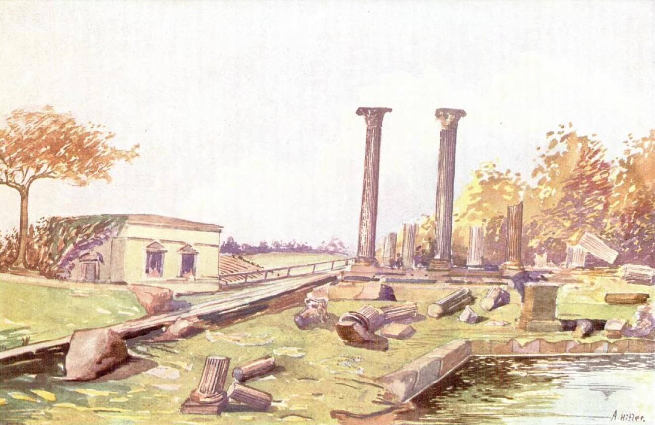 КОМПОЗИЦИЯ НА ЭТОЙ КАРТИНЕ, ИЗОБРАЖАЮЩЕЙ РИМСКИЕ РУИНЫ, ДОСТАТОЧНО ХОРОШО СОЧЕТАЕТСЯ ДРУГ С ДРУГОМ. ХОРОШЕЕ ЧУВСТВО ЛИНИИ ВЫДАЕТ ТАЛАНТ ГИТЛЕРА К АРХИТЕКТУРЕ