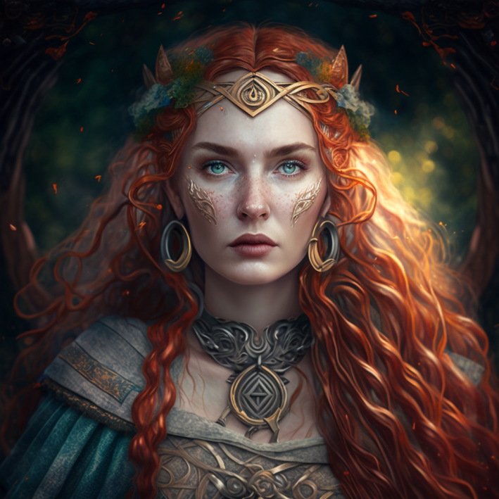 8. Это Кельтская богиня. Лично мой фаворит. Вообще обажаю кельтскую мифологию. Я б если смог еще б и галлов заюзал. У них есть бог с головой оленя. Пусть она будет повелевать огнем.