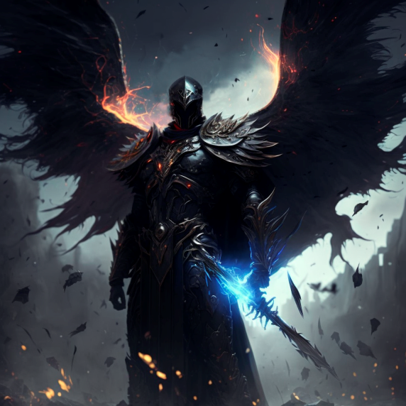 Мужчина был одет в чёрные доспехи, на поясе висел длинный меч, лицо частично скрыто шлемом. Он медленно поднялся на пьедестал и подошёл ближе. Ника остановила его в нескольких шагах от себя призвав на полу белое пламя.