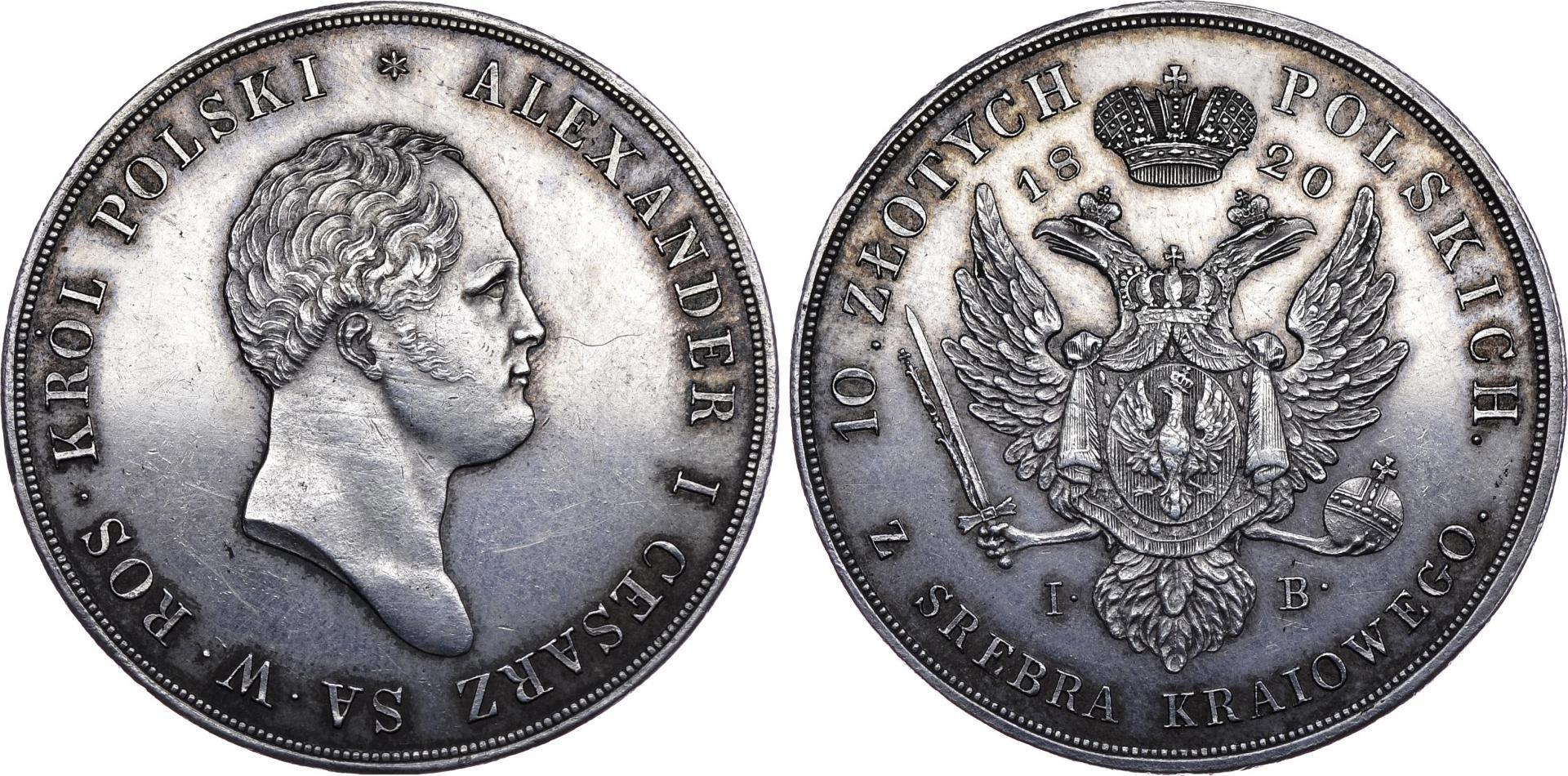 Как видим, номинал монеты установлен в злотых, надписи выполнены по-польски, однако на одной ее стороне помещен портрет Императора Александра I, а на другой - герб Империи. Собственно польский герб здесь тоже присутствует, но находится в подчиненном положении - на груди российского орла.