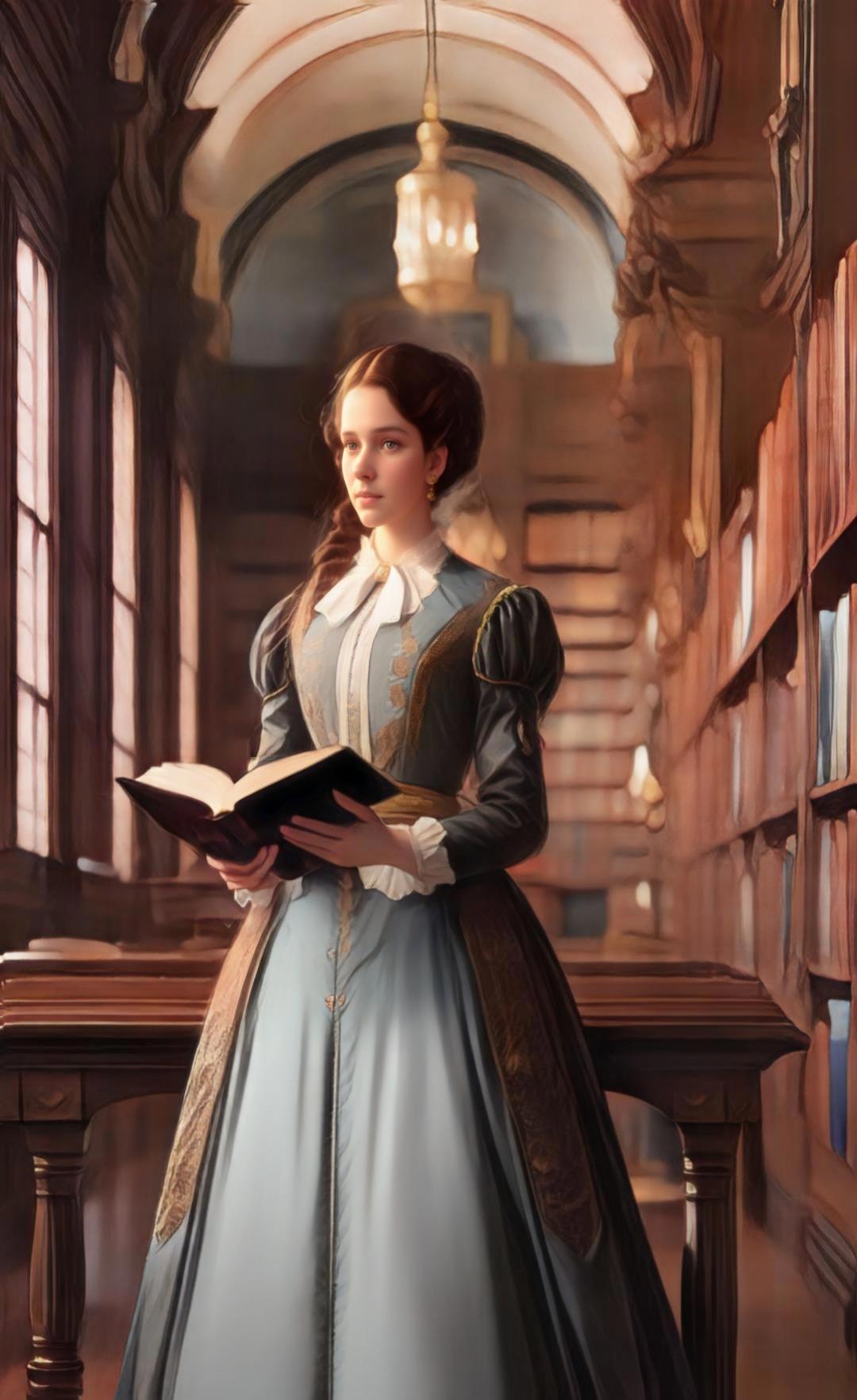 На мой взгляд прекрасно передана главная героиня в любимой ею комнате — библиотеке.