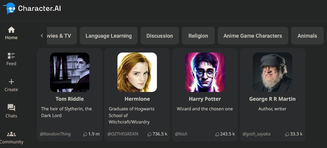 Там и Гарри Поттер есть! https://beta.character.ai/