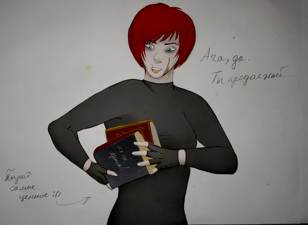 Зная о том, что Райан плох в деловой этике наёмников: съязвит в ответ на нападки, после чего тишком стащит первые понравившиеся книги прямо у него из под носа, чтобы потом подороже продать. (Ибо привыкла выживать везде, где это возможно и невозможно)