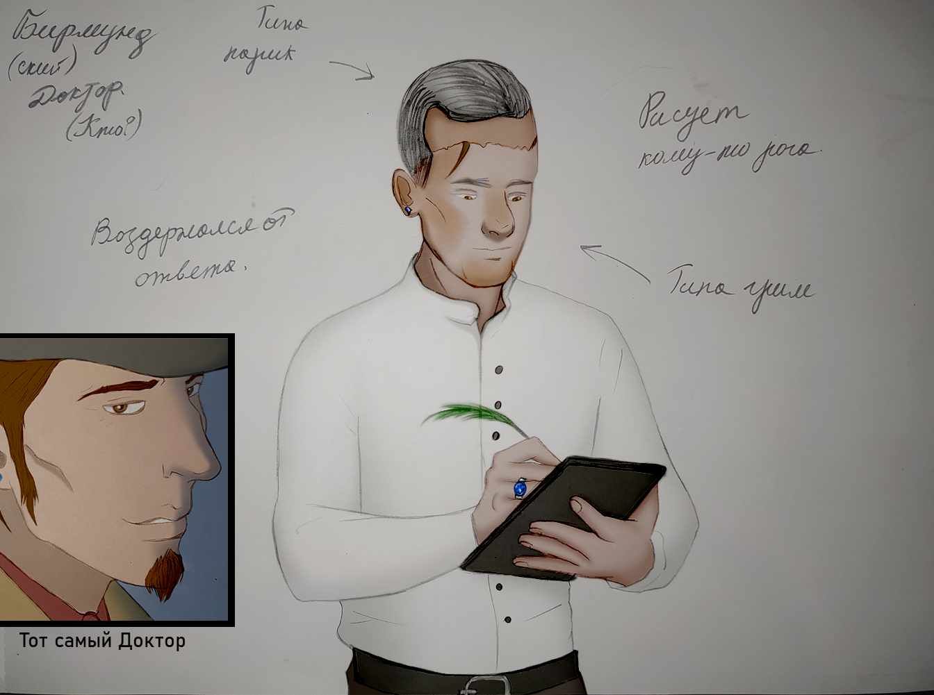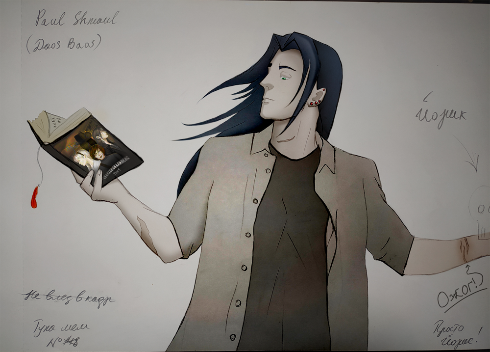 5. Изначально хотел сделать аля-мангу в руках у Райана, но потом придумал замут с "коллекционным экземпляром", связал это с историей героя и... и в итоге это уже не манга а брак производства :D