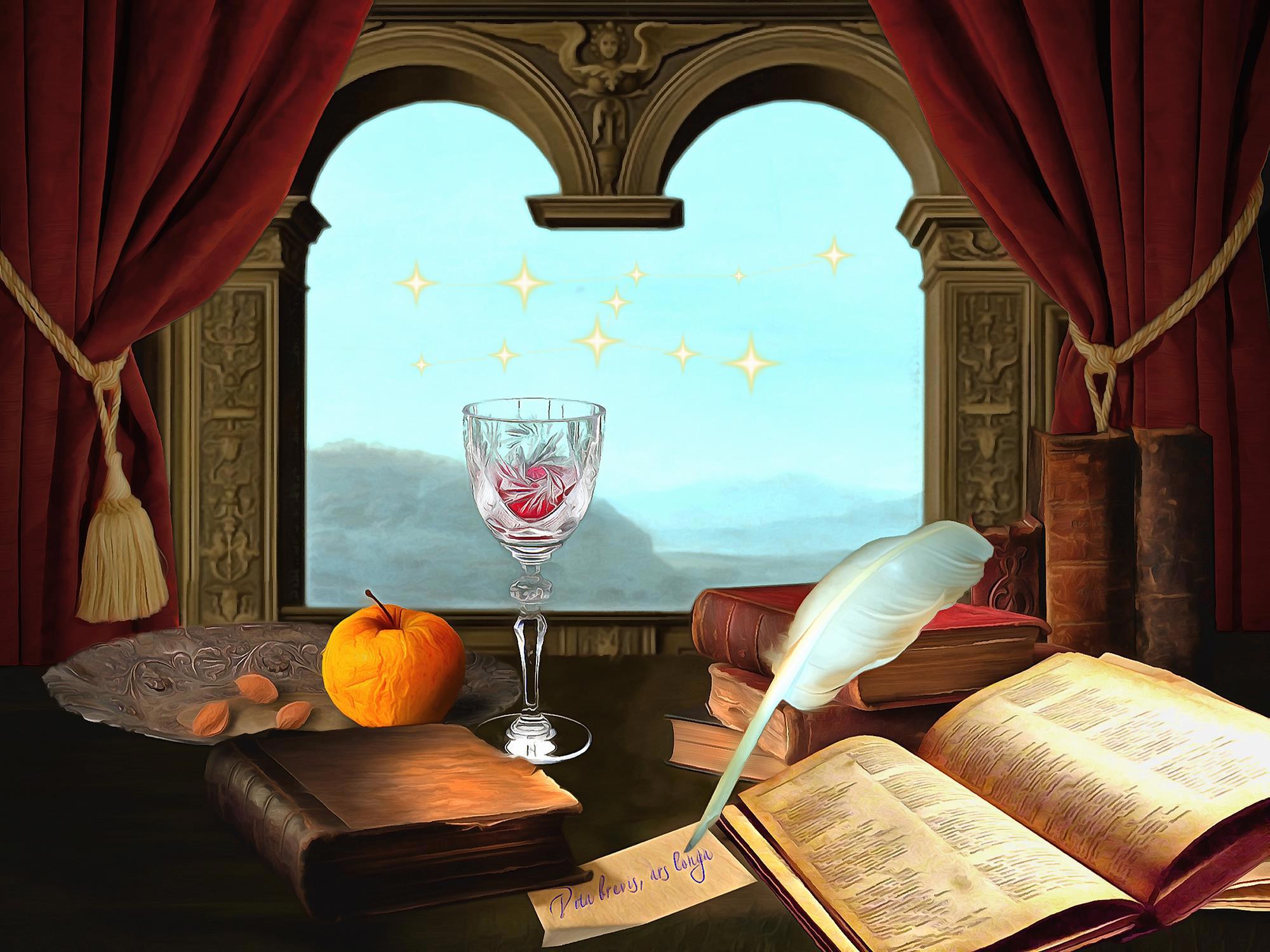 В романе упоминаются живописные полотна. Вот одно из них — старинный натюрморт с обилием символов: