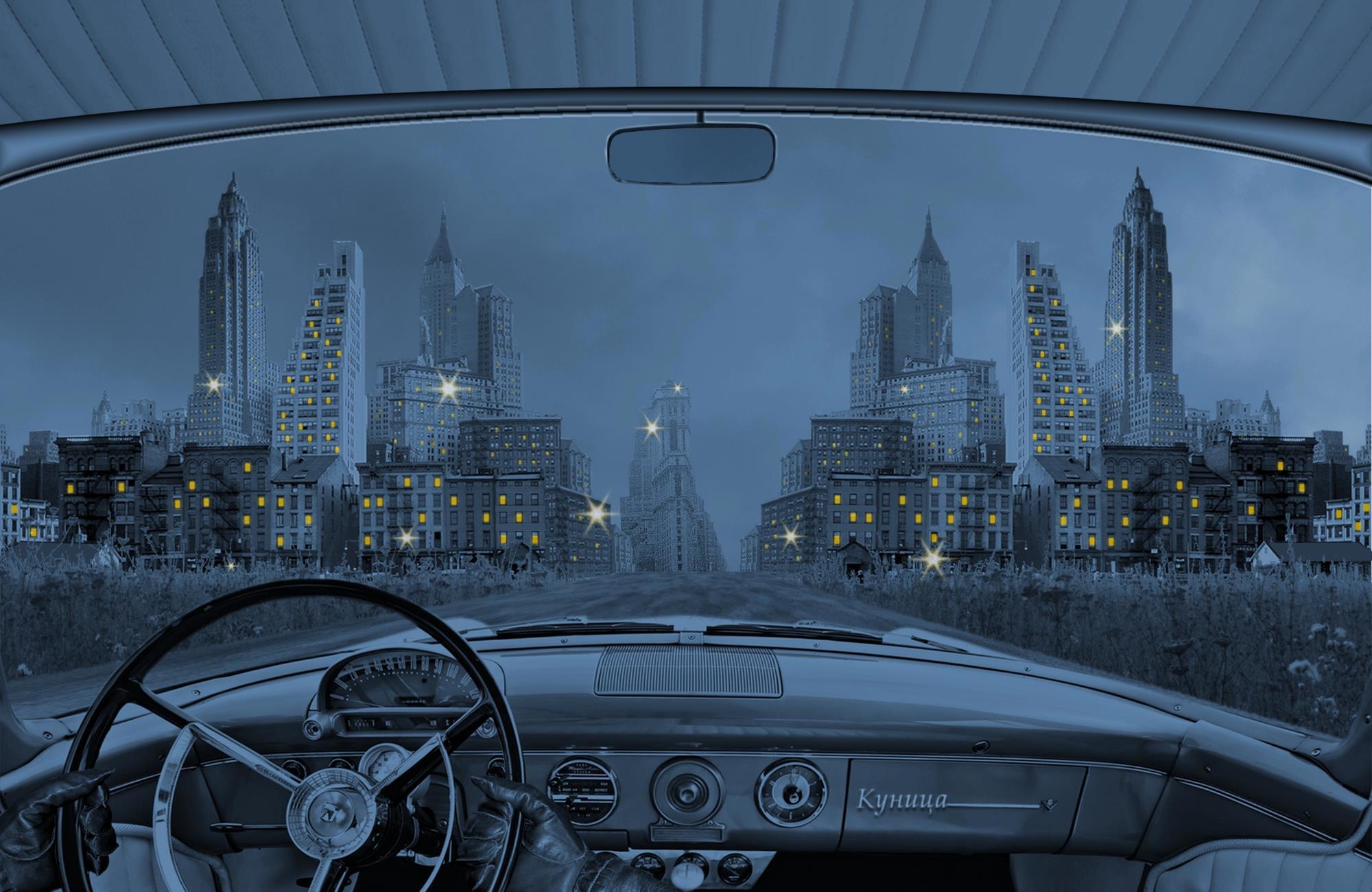 Мир, где происходит действие, напоминает Америку пятидесятых годов по уровню технического развития. Но он — вымышленный, с фантастическим допущением. Художник увидел его вот так: