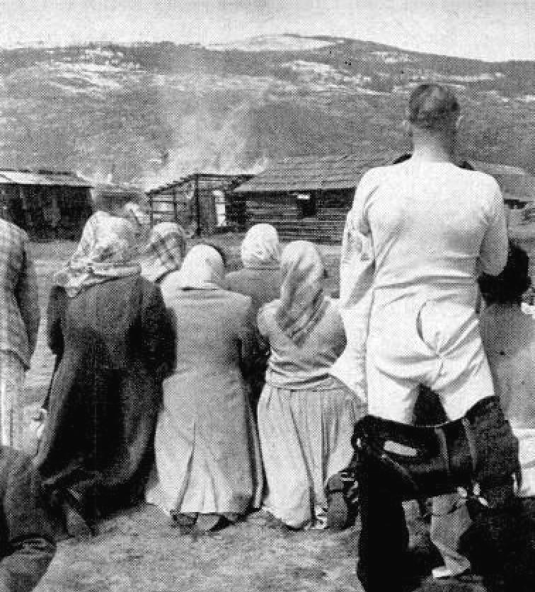 РАЗДЕВШИСЬ, ЧТОБЫ СТАТЬ УЧАСТНИЦАМИ ПОДЖОГА ДОМА, СКРОМНЫЕ ДЕВУШКИ-ДУХОБОРЫ ЗАПОЗДАЛО ПРИКРЫВАЮТ СВОЮ НАГОТУ, ЗАЩИЩАЯСЬ ОТ ХОЛОДНОГО ВЕТРА