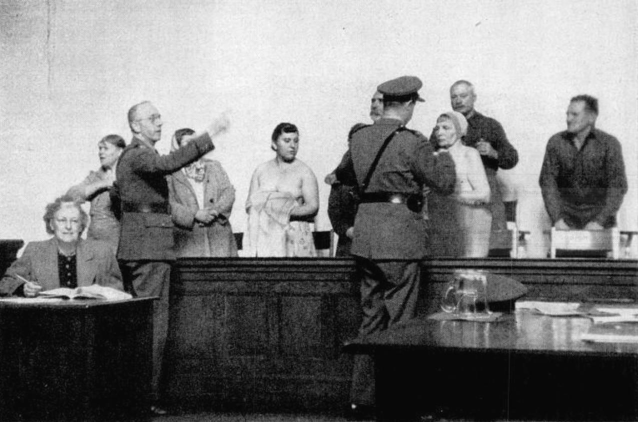 АКТ раздевания женщин-духоборов в суде Нельсона, сразу после вынесения им приговора по обвинению в обнаженном виде, застает полицию врасплох. Женщин поспешно выпроводили, а галерею для посетителей освободили для суда над другими.