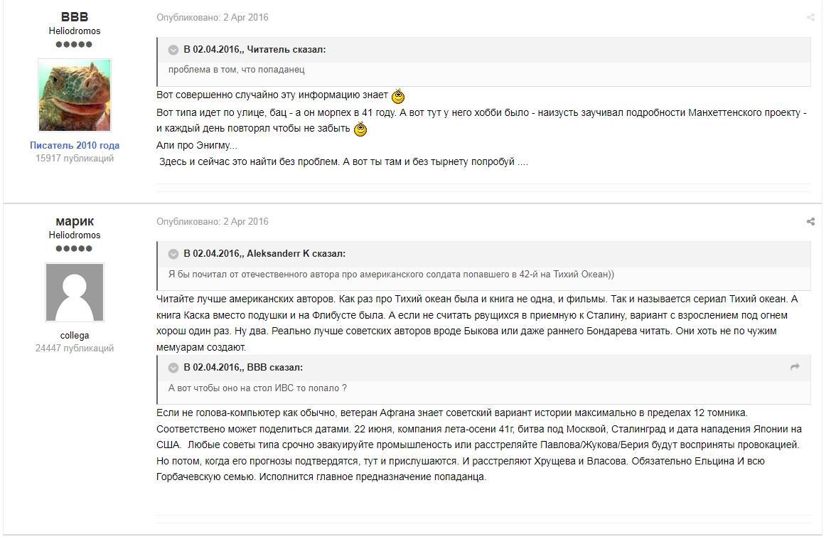 Где тамошние комментаторы с шуточками да прибауточками обсуждали и злословили над сюжетом до мелочей, несмотря на то, что это (книгу Рожкова не считаем) был первый раз, когда путешественник во времени участвует в во Второй Мировой войне, находясь в рядах американской армии.