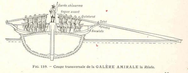 Необходимая длина весел в отношении длины и ширины судна оставалась секретом каждой семьи судостроителей и каждой верфи. Исходным пунктом для всех расчетов являлась ширина корпуса, по которой рассчитывали отстояние постицы от внешнего края куршеи (центральный проход вдоль судна между гребцами правого и левого борта). Венецианский галерный мастер Пре Теодоро Николо для судна шириной в 7,5 м приводит расстояние между куршеей и постицей 4,4 м, при этом сама куршея имеет ширину 0,9 м. Тем самым расстояние между постицей и корпусом (1,1 м) составляло точно V, расстояния между внешним краем корпуса и внешним краем куршеи (3,3 м).
