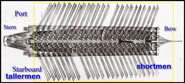 Столь большими веслами быстро не погребешь, да и в большой команде темп задает не самый сильный, а самый слабый гребец.