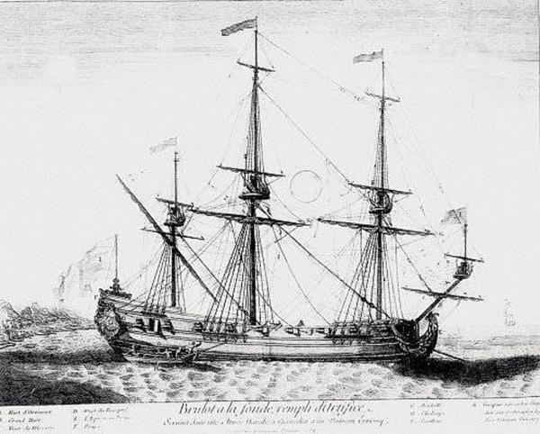 8. 20 мая 1676 г. в порту Палермо испано-голландский флот стоял под прикрытием береговых укреплений. Французский флот, высмотрев положение противника, отделил отряд из 5 горящих судов, которые с попутным ветром пошли на союзников. Суда испано-голландского флота, опасаясь гибельных последствий, начали рубить канаты и выбрасываться на прибрежное мелководье, но это действие только ускорило поражение. При свежем попутном ветре брандеры легко следовали за уносимыми кораблями и сцеплялись с ними. 9 кораблей испанцев пали жертвами атаки.