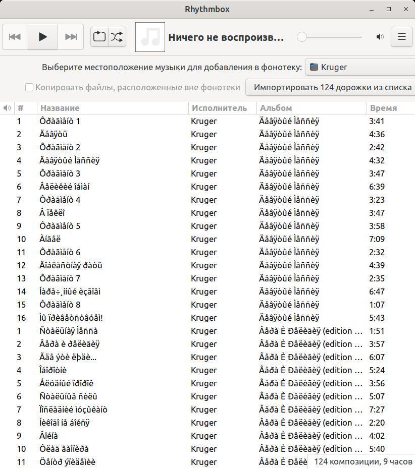 Сюда же скачанные сами-знаете-откуда mp3 дискографии, при открытии через аудиоплееры также превращавшиеся в наборы кракозябр. И если одни плееры удавалось переучить на нужную кодировку, то другие упорно продолжали выдавать вот такие произведения искусства: