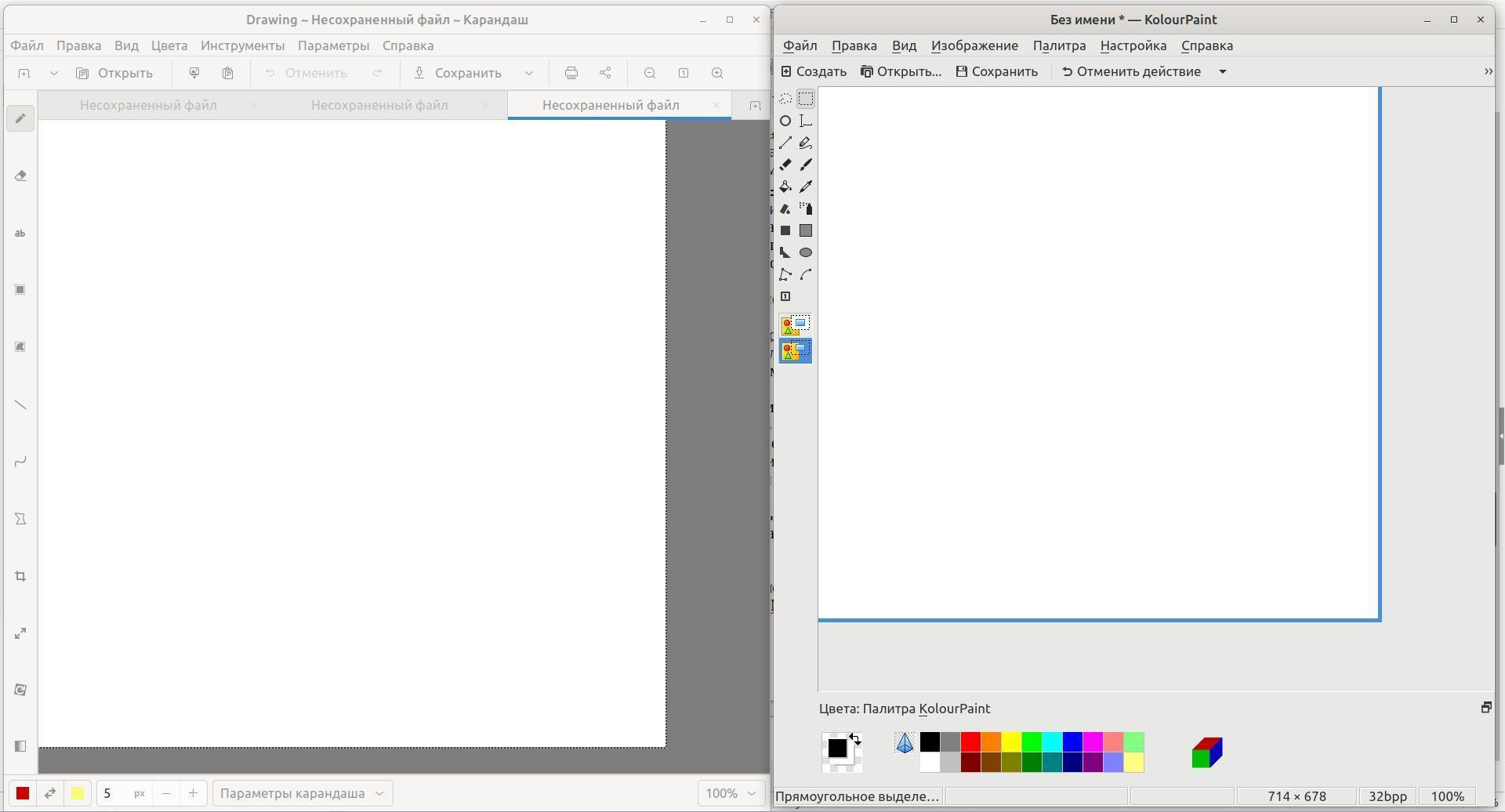 Текстовый редактор тоже вполне обычный, а вот в дефолтной рисовалке Drawing не обнаружилось банальных инструментов вроде заливки. (По секрету, заливка там есть, но чем её искать, проще сразу поставить нормальный KolourPaint).