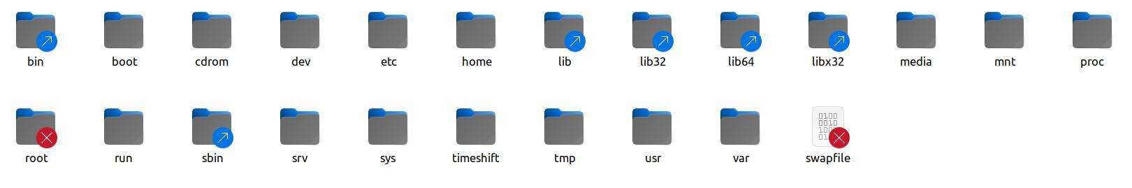 Ну и если уж зашла речь о разделах, то в линуксе нет привычных нам дисков C и D, и даже при наличии двух или больше разделов всё их содержимое будет отображаться в одной куче. Выглядит это примерно так: