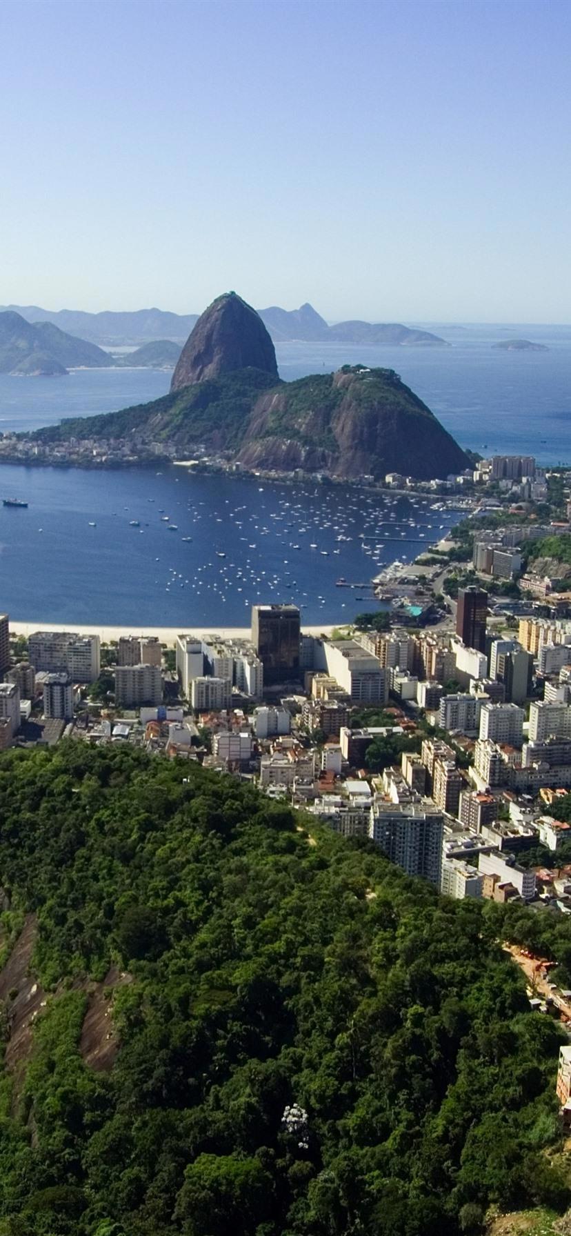 Расположен на берегу залива Гуанабара Атлантического океана, на узкой равнине, зажатой с двух сторон горами и морем.