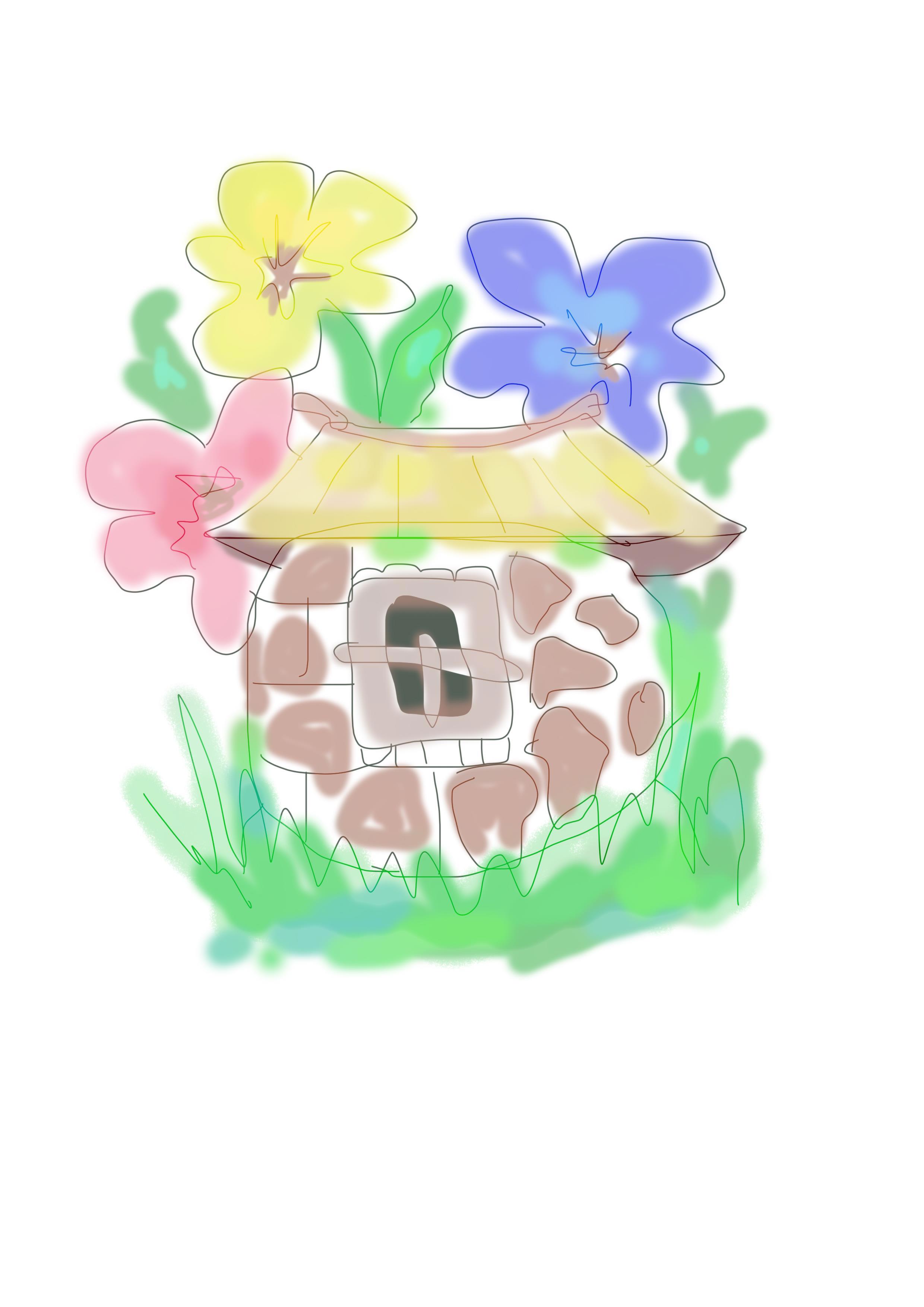 Тогда перешла к задачке попроще: "Круглая избушка среди гигантских садовых фиалок".