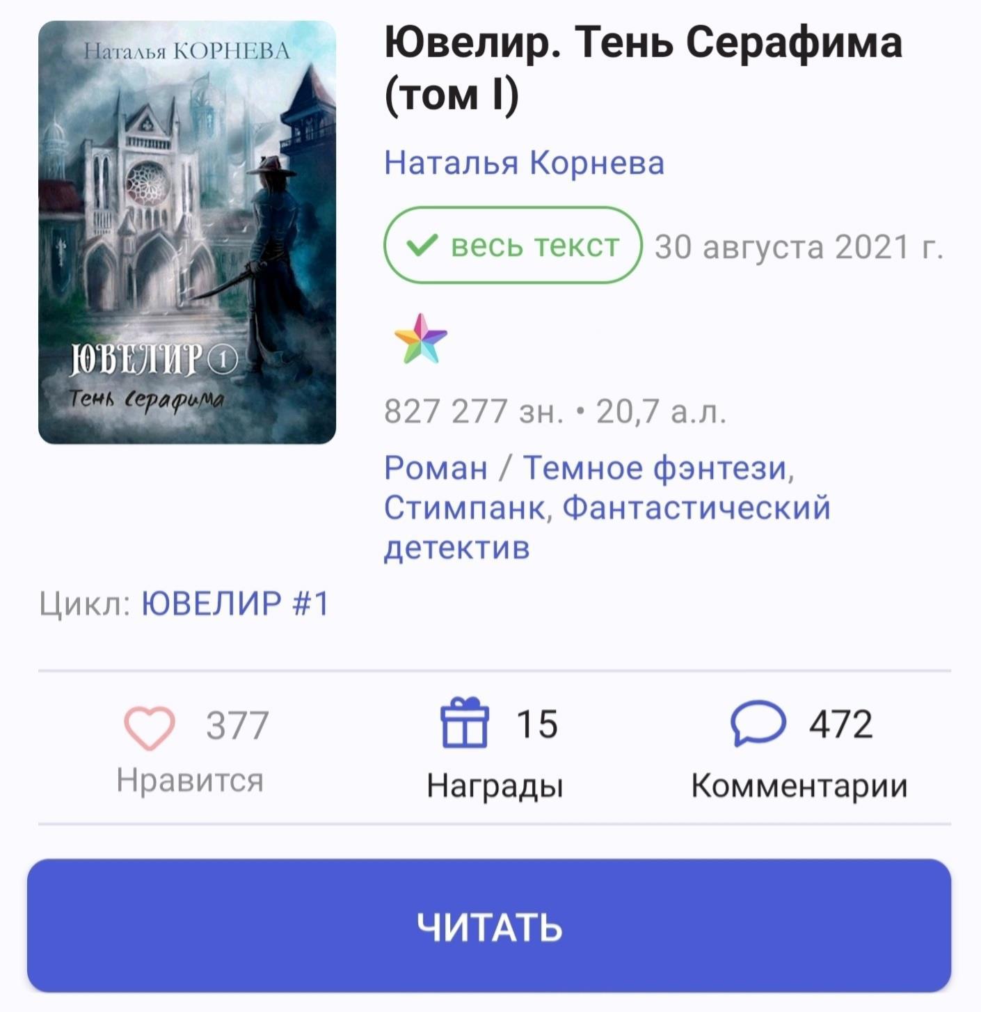 Теперь на страничке моего дебютного романа «Ювелир. Тень Серафима» можно увидеть красивую разноцветную звездочку: