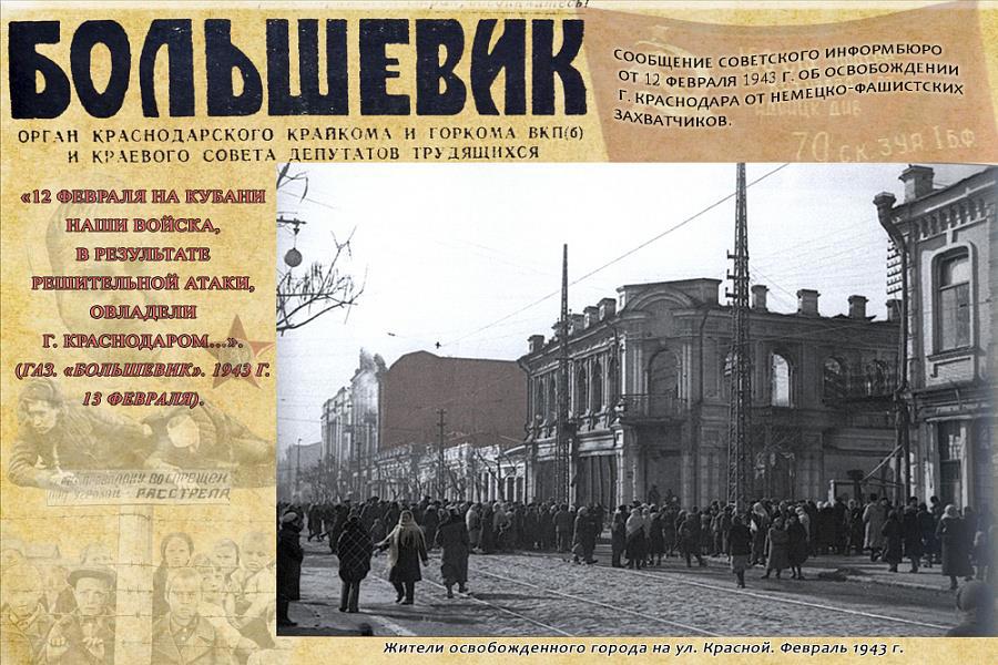 Автор: Андрей12 февраля 1943 был освобожден от немцев Краснодар. Поздравляю всех жителей города с праздником!!!