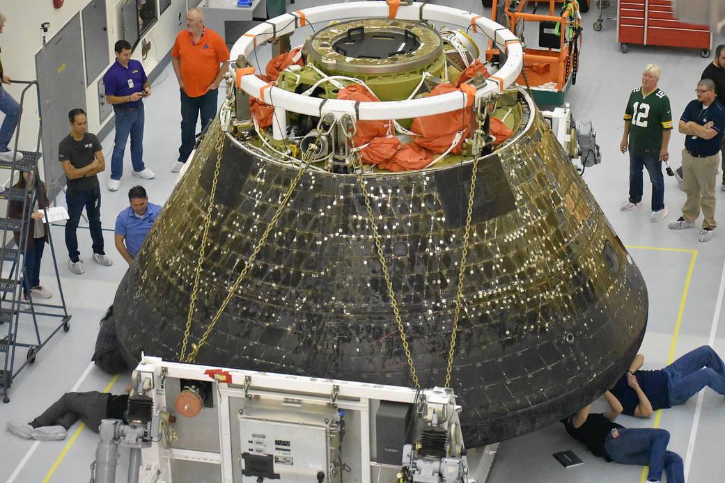 Но ещё пару фоток не могу не показать. Вот здесь американцы готовят тот самый корабль без экипажа к полёту. Точнее, проверяют плитки, которые предохраняют его корпус во время приземления от высоких температур: