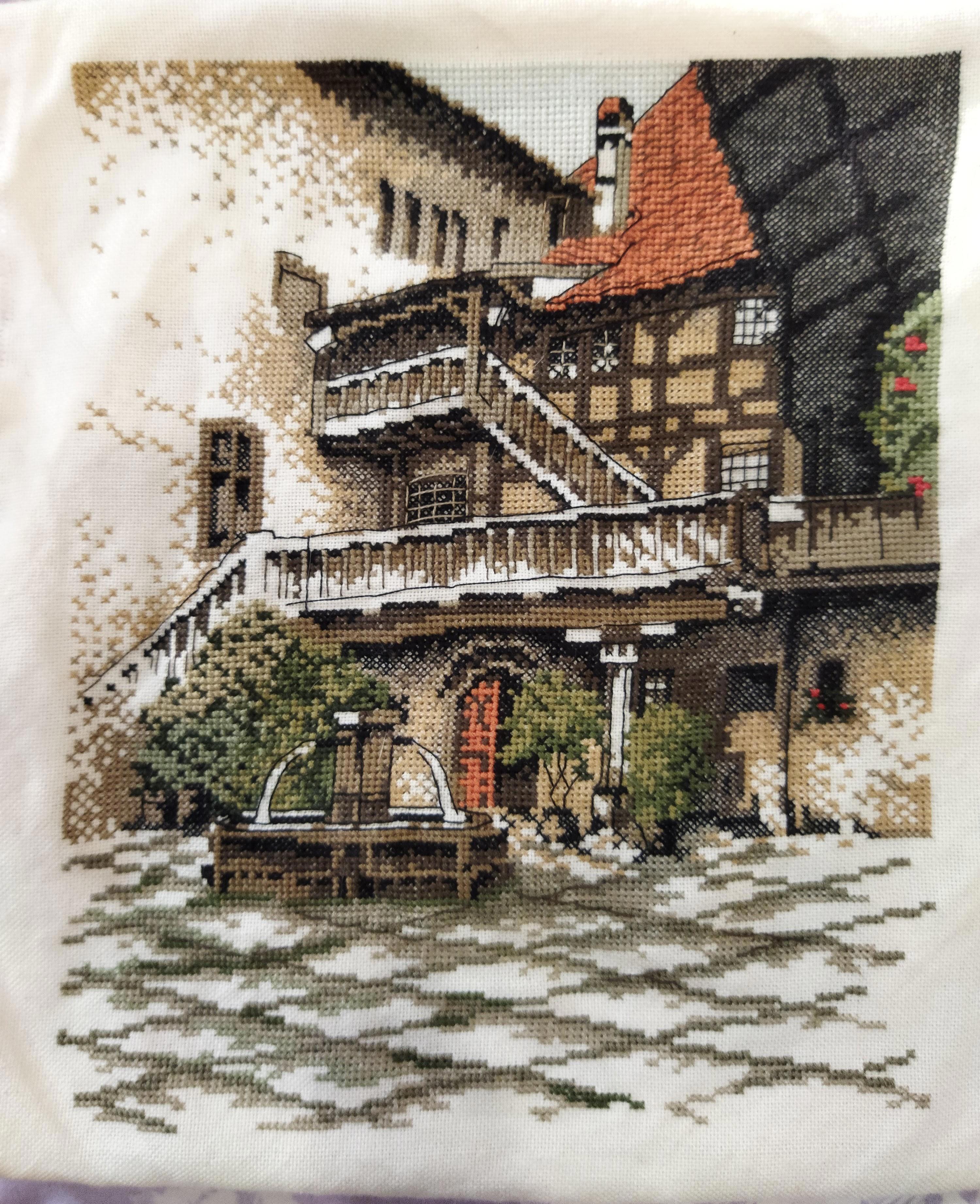 Вторая картина нашла меня случайно. Я увидела этот набор в Кирове, купила. Но вышивала в то время другой сюжет. И чудесным образом у меня с собой оказался кусок равномерки, как от первой картины! Конечно, я начала!