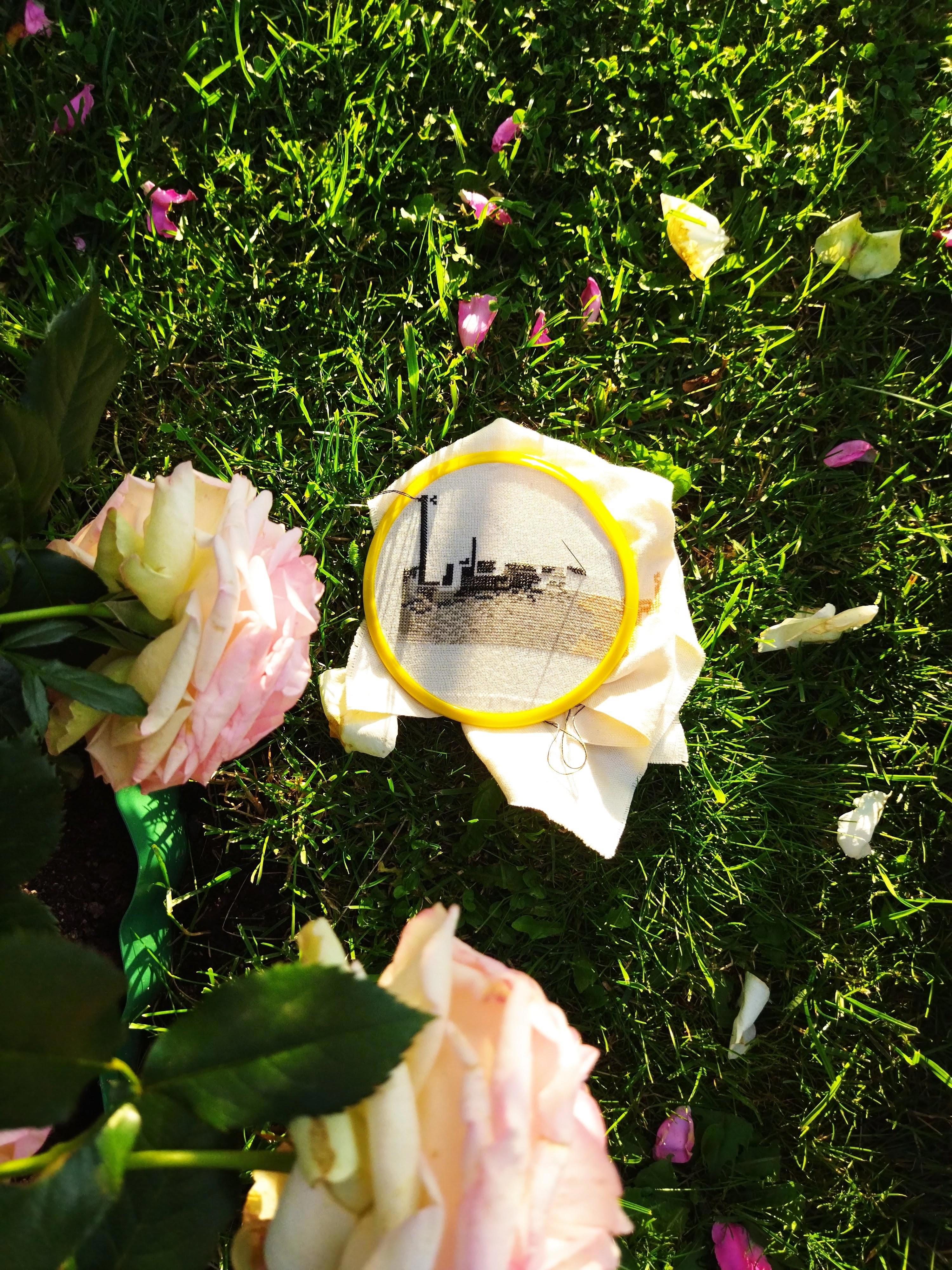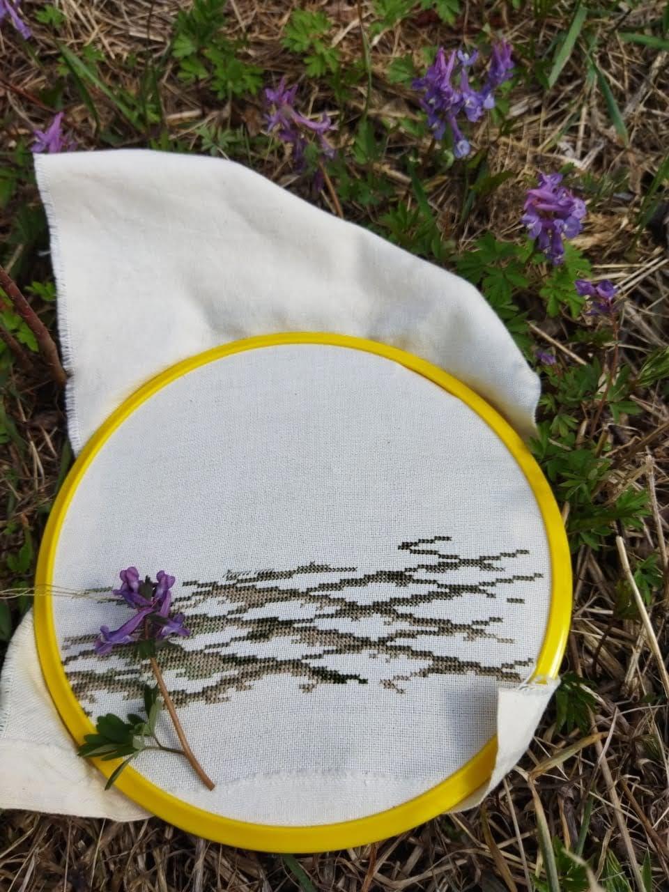 Это были изумительные две недели в мае, когда я вышивала на берегу реки, любуясь на уточек и заигрывающих с ними селезней.