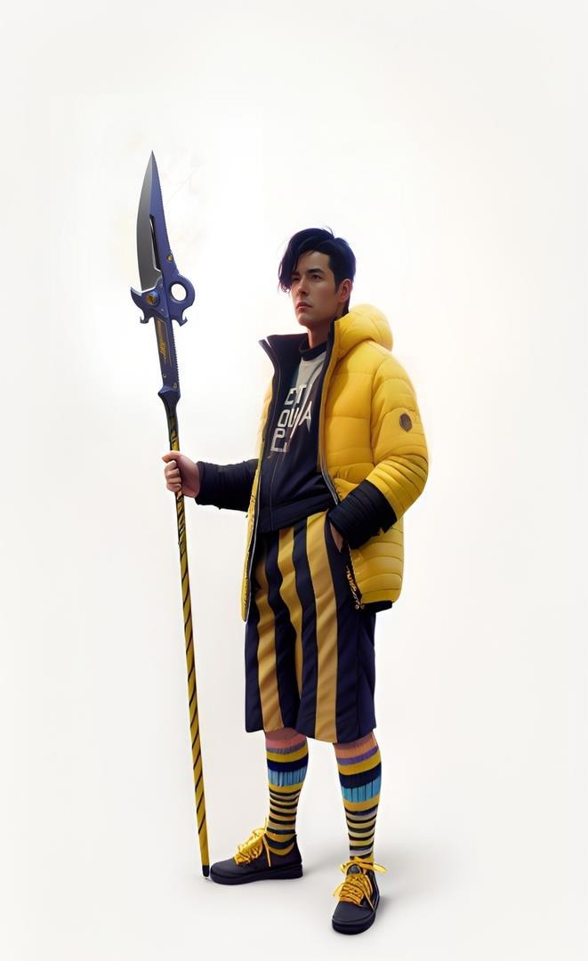 У дверей стоял швейцарец в полосатых колготках, сине желтых шортах и желтой куртке с алебардой в руках.