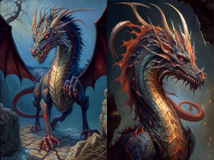 Автор: Ada KingПопросили меня сделать нейросеткой кентавро-дракона, мол, ничего не получается, памагити. У меня, как ни странно, получилось почти с первого раза, и как оказалось позже исключительно вследствие ошибки. Дальше покажу несколько промтов и их результаты (внимательно следите за --no). Только делать будем не кентавра, а драконоподобную злую собаку-кусаку и показывать буду только по две картинки на каждый промт, так комфортнее.