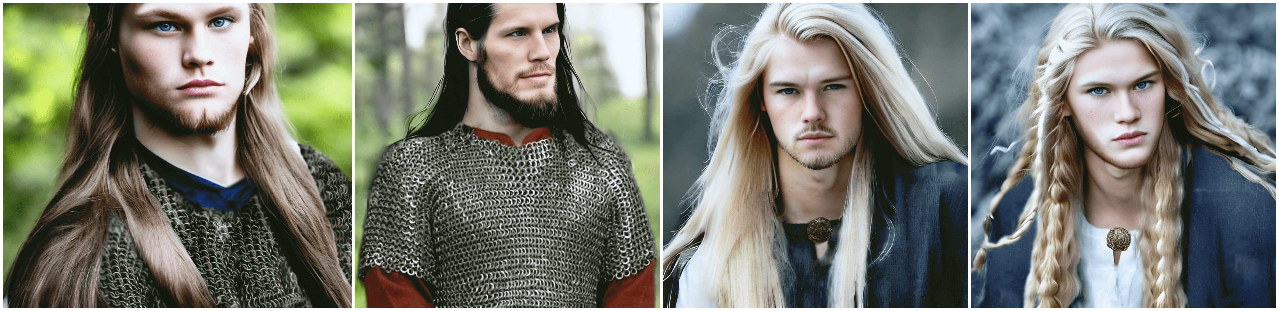 . А вот и 4 брата, о которых этот пост. Все расположены по возрасту. Слева Харальд, старший брат, ему 22 зимы. Рядом с ним Альрик, ему 20 зим. Он персонаж особенный, в нем "взыграли" гены его прабабки со стороны отца – саамки, поэтому у него черные волосы и зеленые глаза. Далее – Хельги, ему 19 зим. Последний справа – Свейн, 17 зим. Свейна назвали в честь его деда Свейна конунга. Харальд получил имя своего отца – Харальда конунга. Хельги так нарек Харальд конунг, его отец. А Альрику такое имя дала его мать – дроттнинг Бергтора.