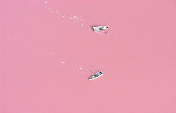 Галофильные микроорганизмы создают розовую воду в озере Ретба.