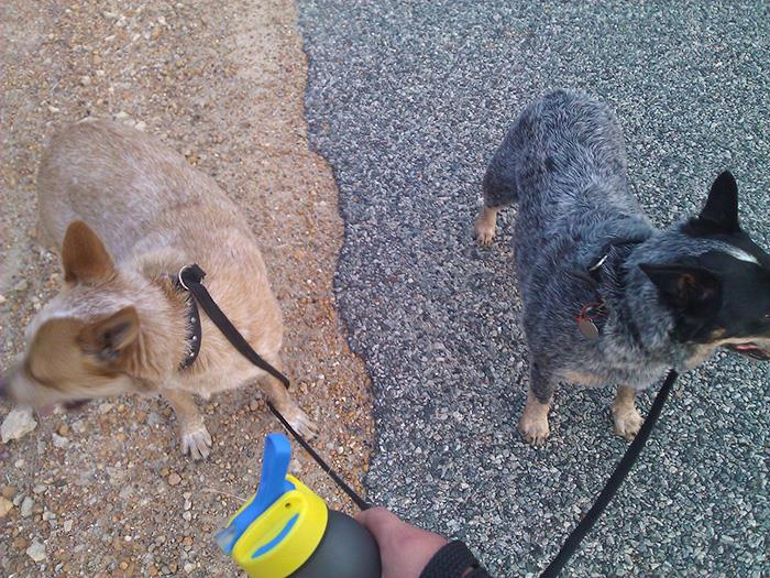 Эти Собаки Отлично вписываются в цвет покрытия дороги.