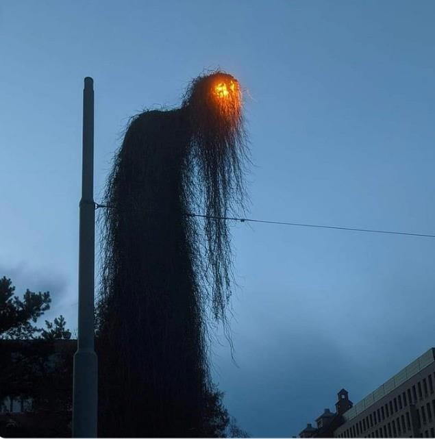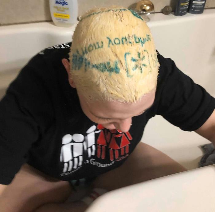 Девушка осветляла волосы и замотала голову пластиковым пакетом, чтобы сохранить тепло. Так надпись с пакета стала частью её нового стиля.