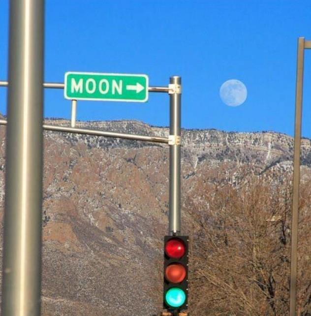 Название улицы на зелёном указателе со стрелкой "Луна".