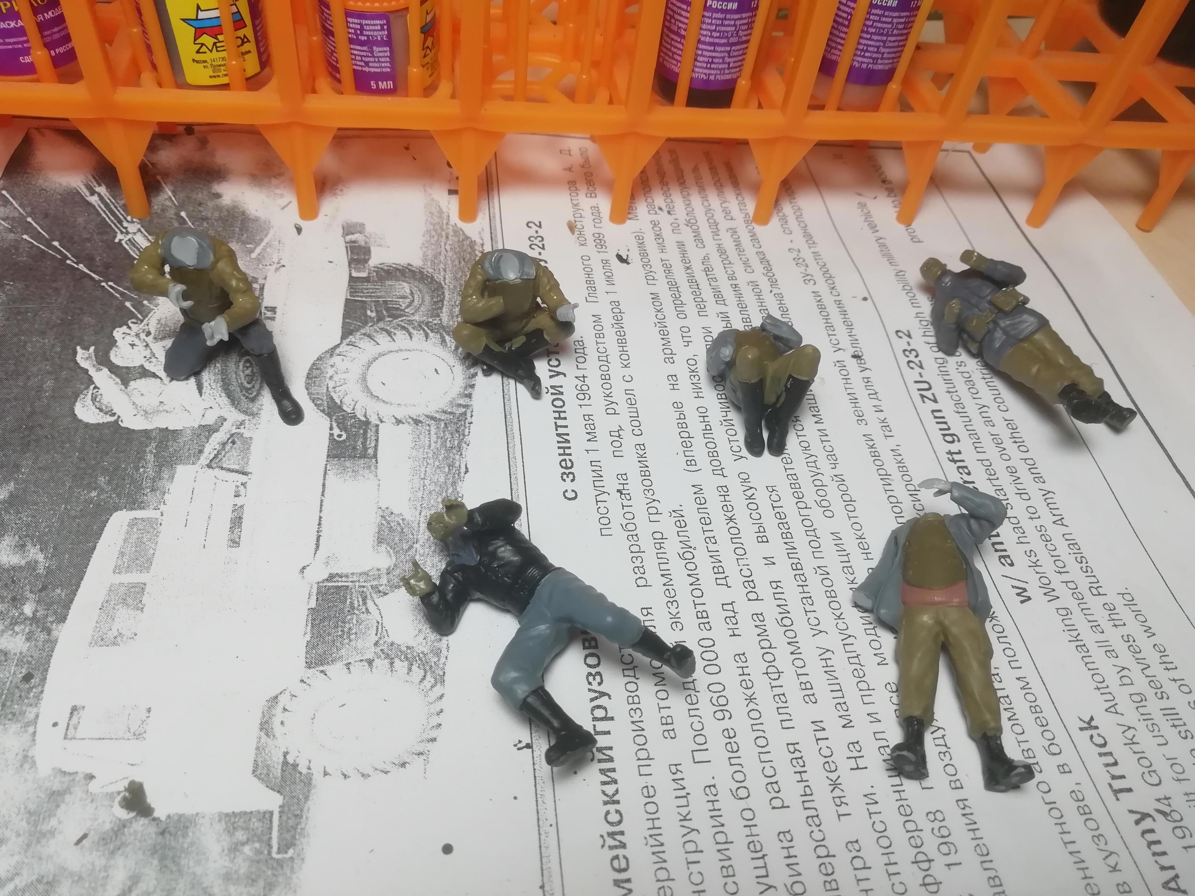 Фигурки покрыты базовым слоем краски - посмотрим, как ляжет, потом буду подкрашивать. Да, это у нас не регулярная армия, а своего рода "ЧВК", так что никакой единой формы - так, элементы. И касок тоже не будет - откуда они в нашем постсоветском постапе? Это вам не Фоллаут с ихней американской военщиной ;)