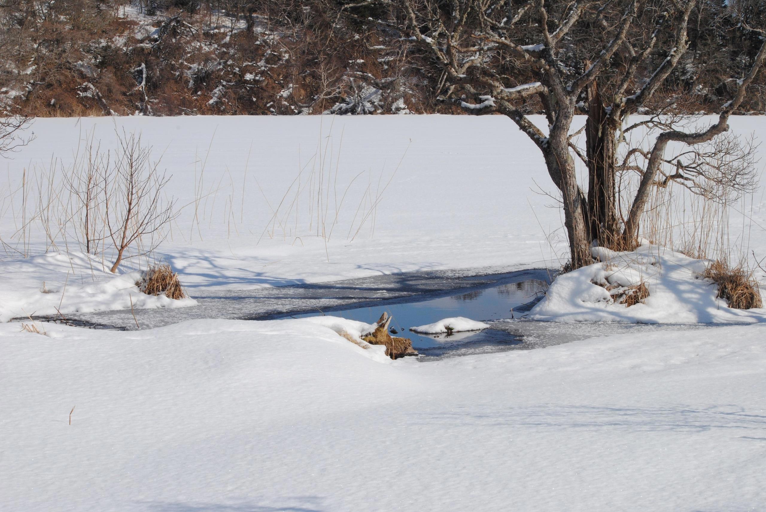 Несмотря на морозы и снега, куча ручьев на острове не замерзает. Поэтому, те же японские журавли, уж насколько здоровенные птицы, а пропитание находят. И весьма счастливы (видео будет при случае).