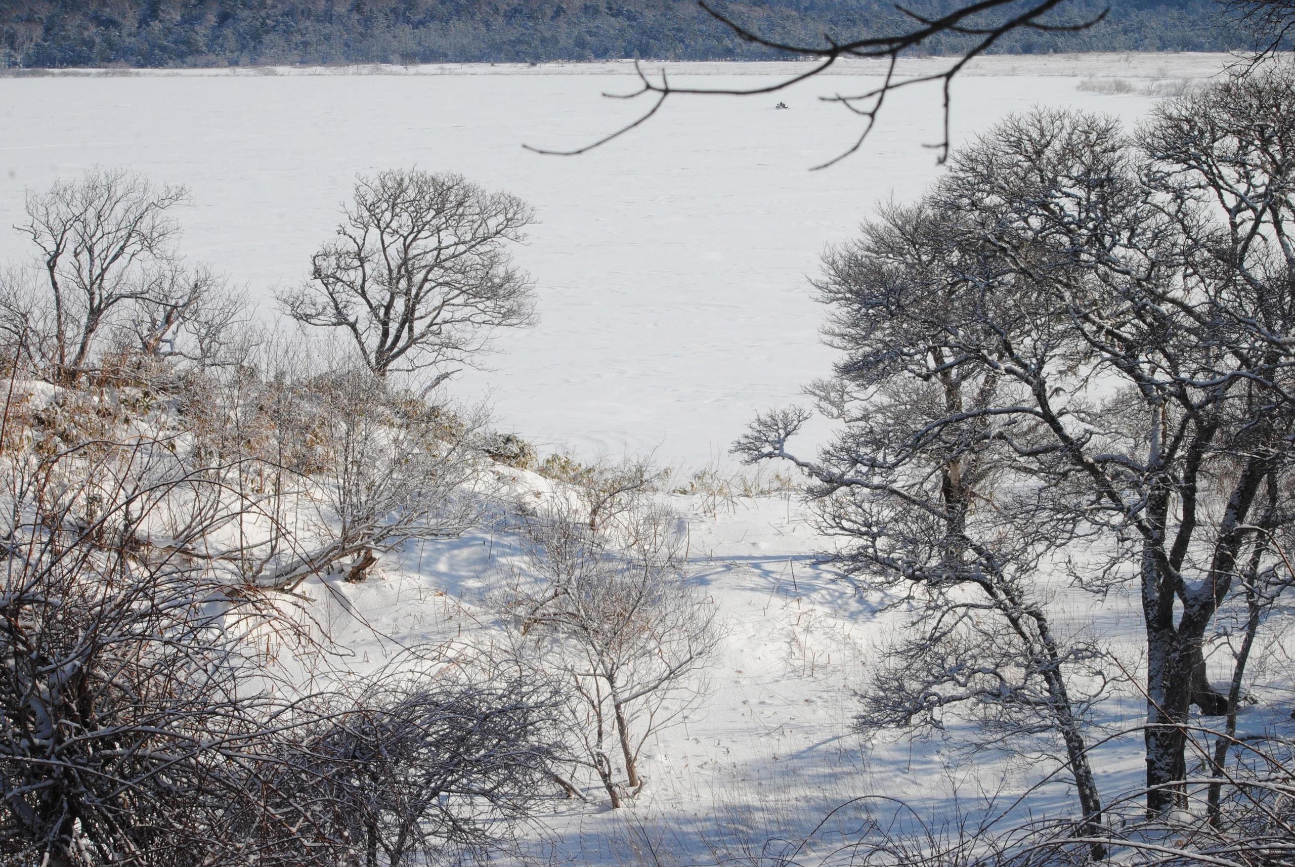 Становясь все живописнее. Это я на первую сопку забрался. По озеру как раз начальник охраны делает фыр-фыр-фыр на снегоходе