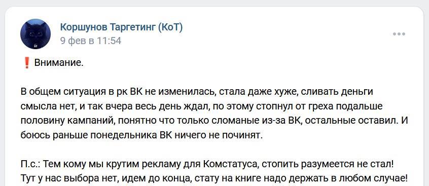Первую неделю я пыталась настраивать таргетированную рекламу во вконтакте сама, поняла, что таргетолог с меня так себе и обратилась к профессиональному таргетологу Павлу Коршунову. На скриншоте ниже можно видеть мои жалкие потуги за первую неделю и две недели выделенные желтым, во время которых таргетинг настраивал Павел (период с 1 по 14 февраля):