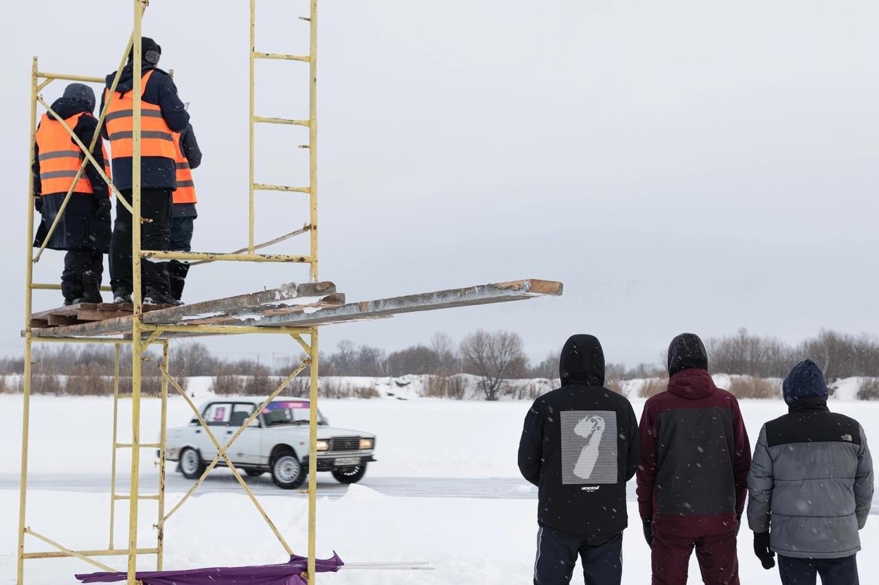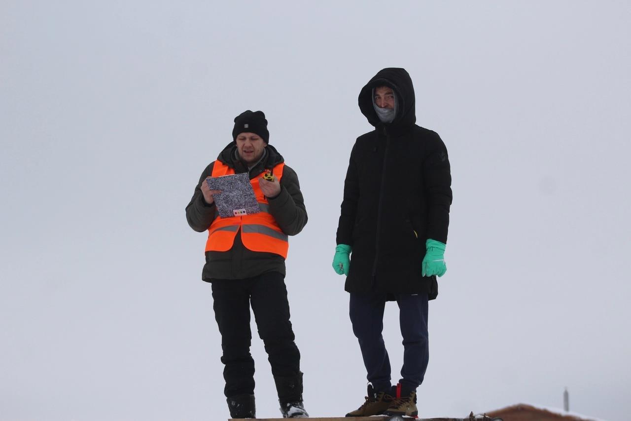 ("Нет вышки и лесов? Не проблема - встанем на здоровенный внедорожник!" - Александр Двинянинов и Андрей Астапов пилот "Lukoil Racing Drift Team" г. Екатеринбург судят I этап SRD 2020 года на ледовом треке в Заосиново)