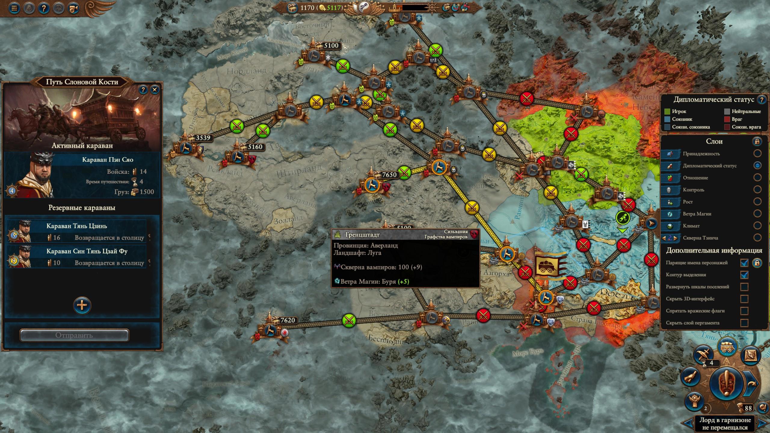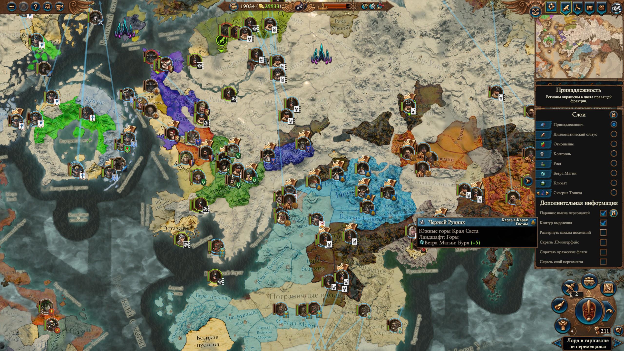 Главное достоинство Immortal Empires, конечно же, это колоссальных размеров глобальная карта, на которой нашлось место почти всем фракциям Warhammer Total War.