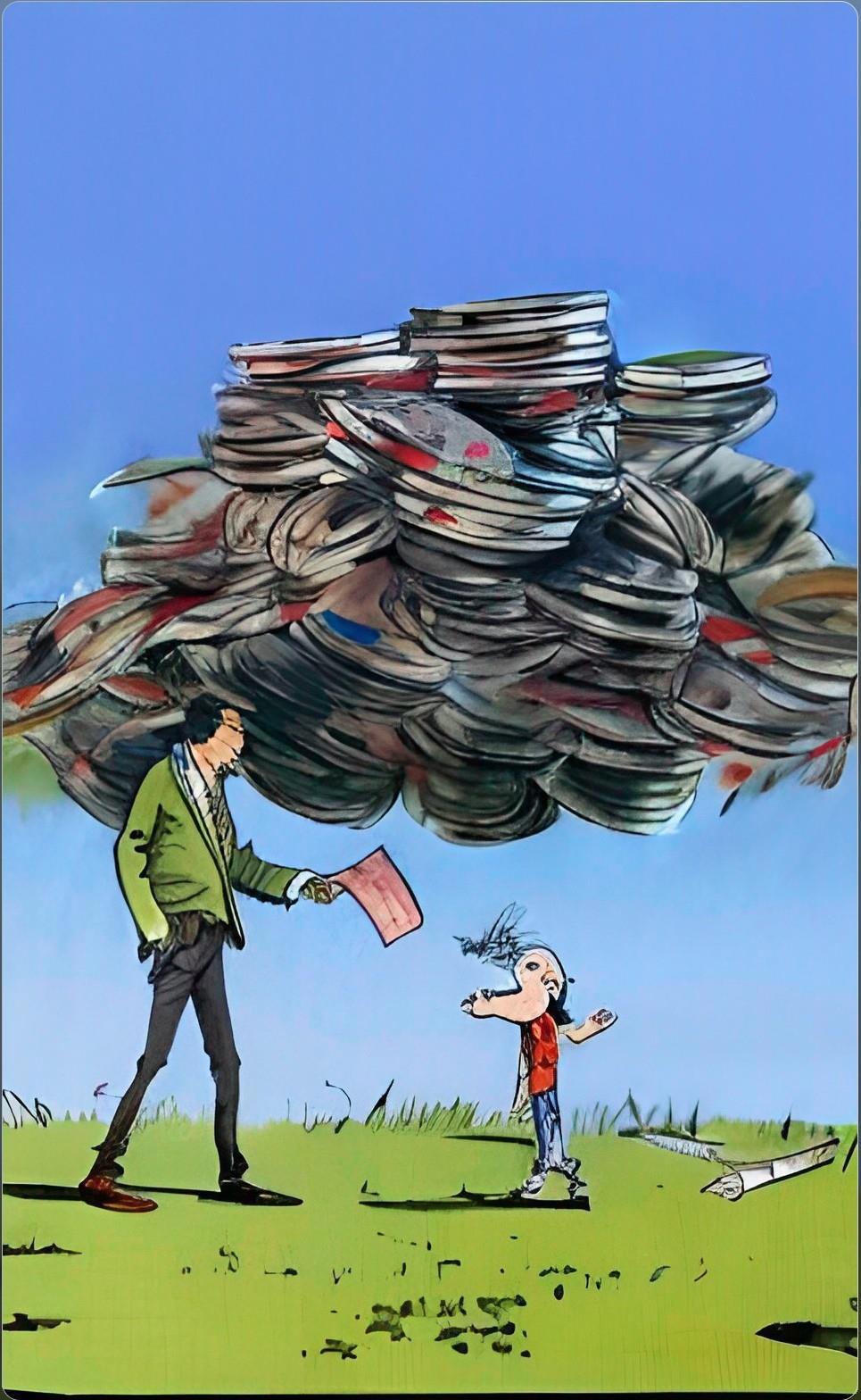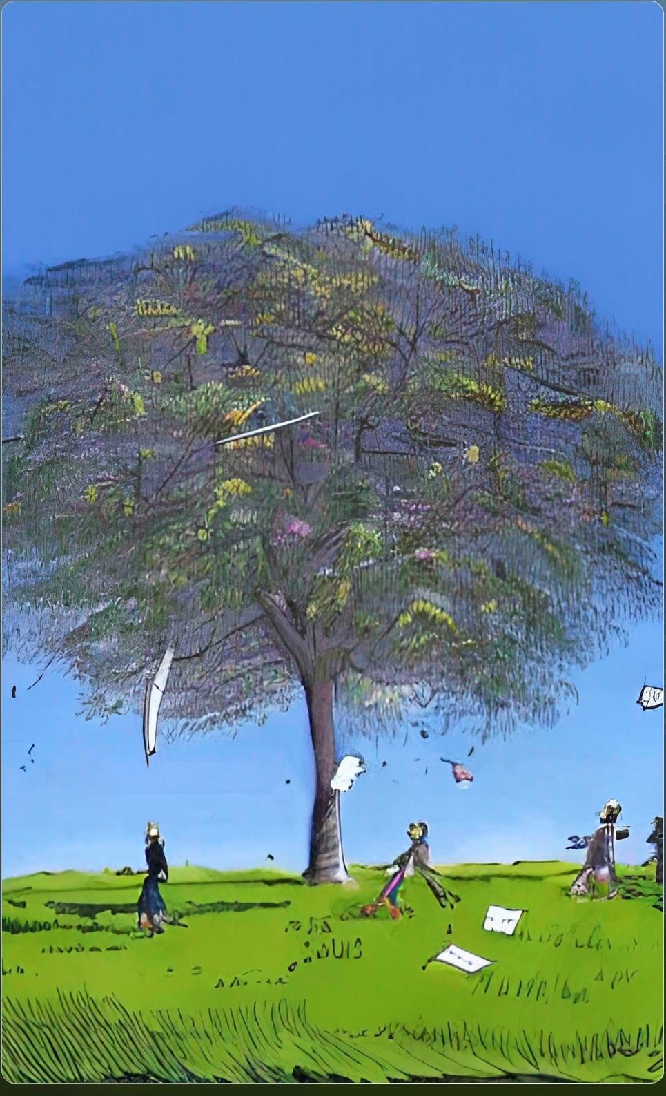 Решил для рассказа "Дерево цветёт" создать цветущее дерево и чтобы люди ловили падающие деньги. результаты были ужасающими. В любом случае, это не то, что на обложку, а людям со слабой психикой показывать нельзя.