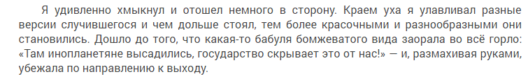 Как и многие другие сцены, эта пышет неестественностью. Во первых, какие версии могут быть? Прыгнул под поезд сам, толкнули, поскользнулся или споткнулся, стало плохо. Какие безумные версии ещё? Реплика чудоковатой бабки не ественна, как и крик бабки (пожилой женщины) которая машет руками и бежит сквозь толпу к выходу. Это абсурд.