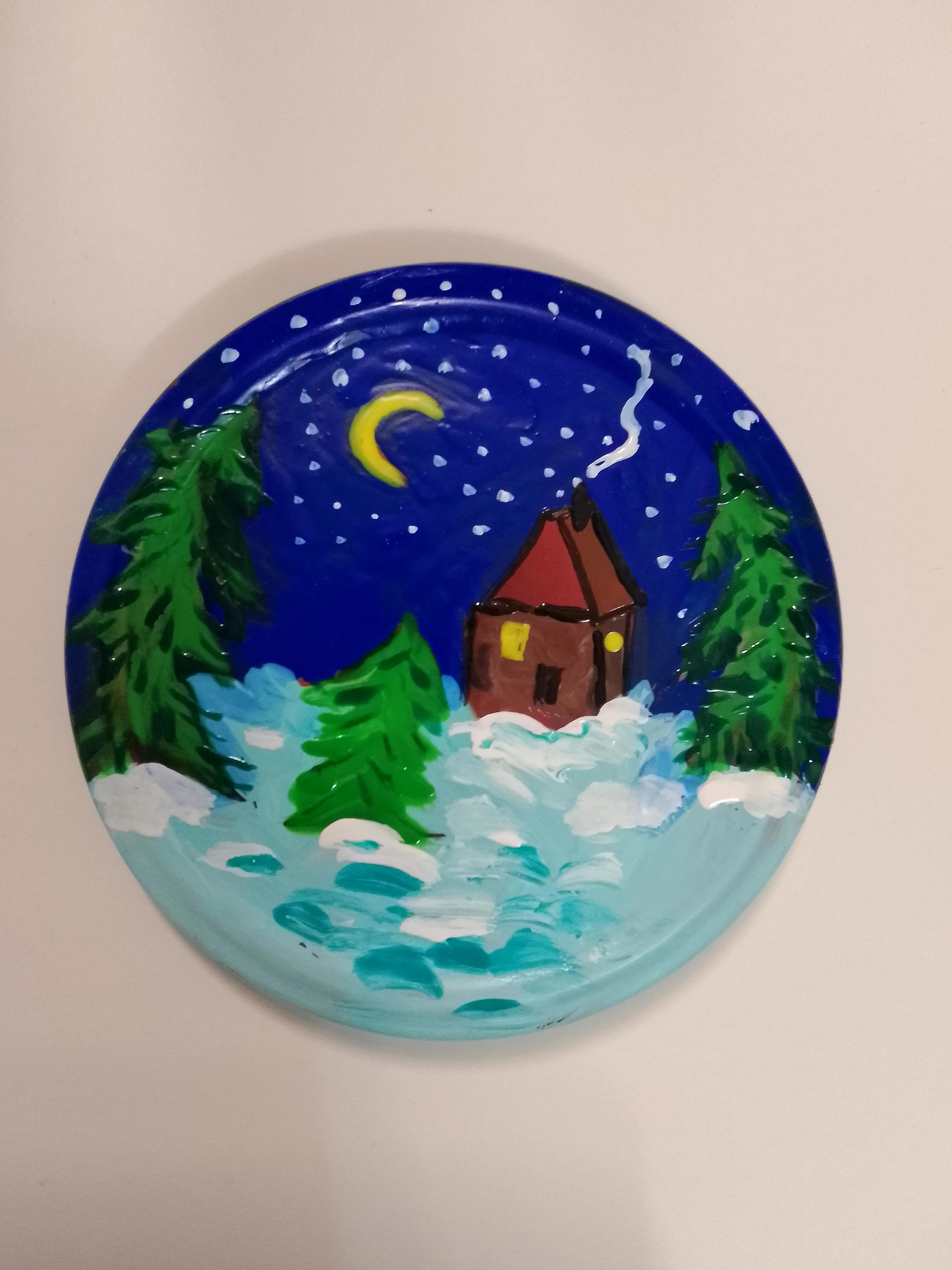 Автор: Катеринкина СветланаНедавно прочитала статью о художнице, которая создаёт миниатюры на использованных пакетиках из-под чая. Очень любопытные работы у неё. Кто бы мог подумать,что на маленьких пакетиках можно творить и рисовать целые пейзажи. Я как-то вдохновилась этими творениями и решила попробовать рисовать на металлических крышках, которые нормальные люди используют по назначению: для домашних закруток. За плечами у меня три года в художке, так что некоторый опыт рисования имеется. Вот что у меня сегодня получилось. Зимний пейзаж на крышке.
