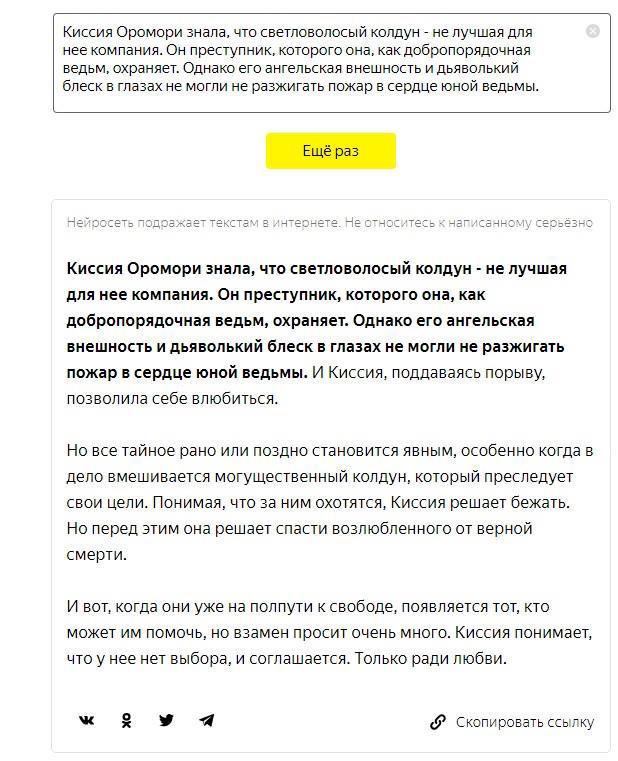 Искала медь, а нашла золото) Вместо нейросети, которая складывает картинки, обнаружила кое-что поинтереснее — нейросеть, продолжающая за тебя любой текст) Ну, это не новость, конечно. Но решила поэкспериментировать. Написала про своих героев первое (очень ванильное), что пришло в голову, и обратилась к балаболе.