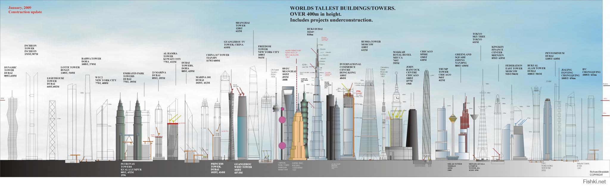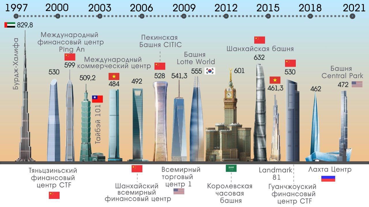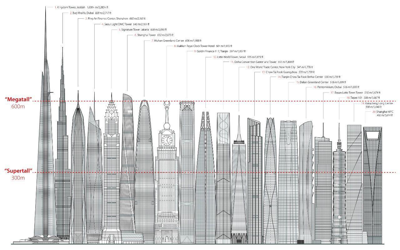 Самые Высокие здания и башни выше 400 м, включая недостроенные и проекты