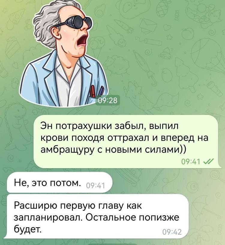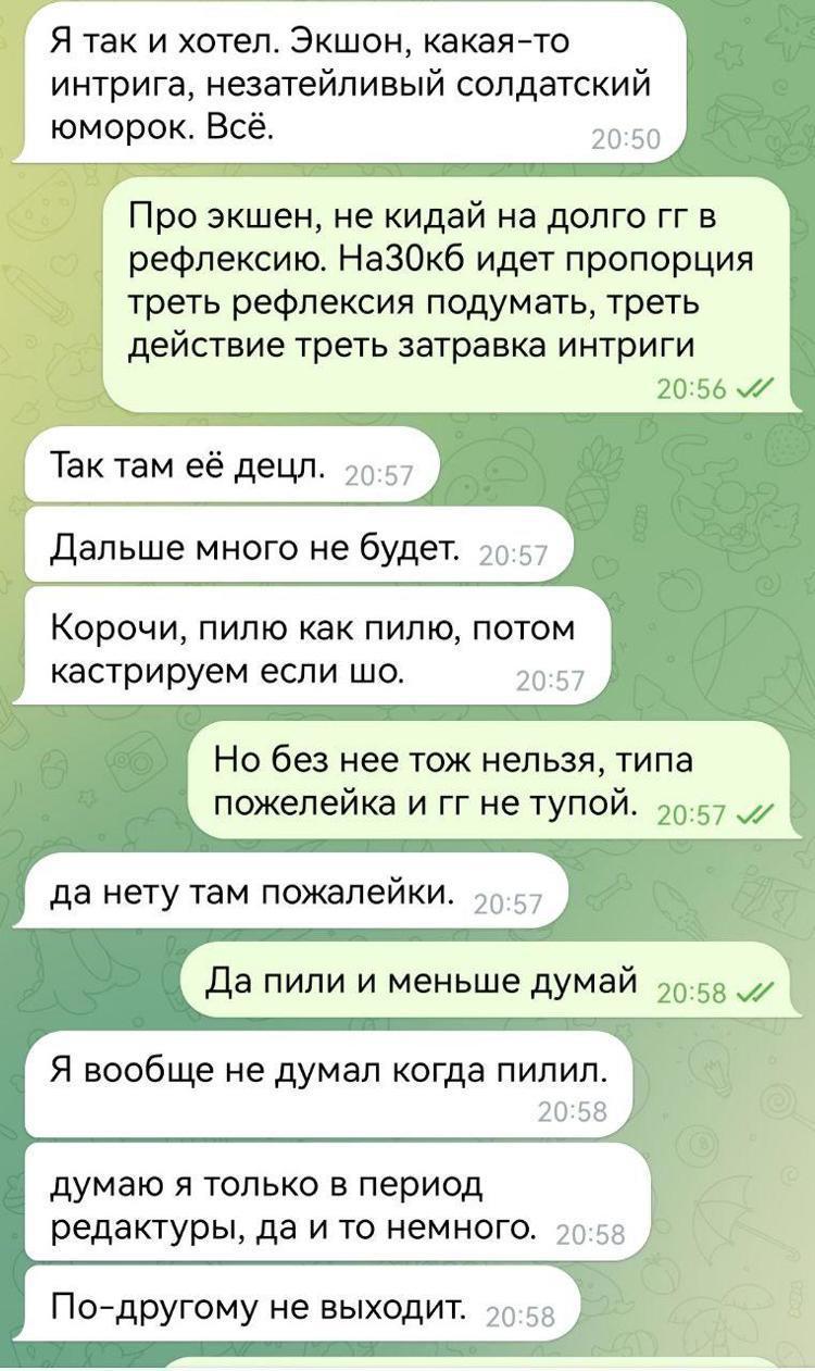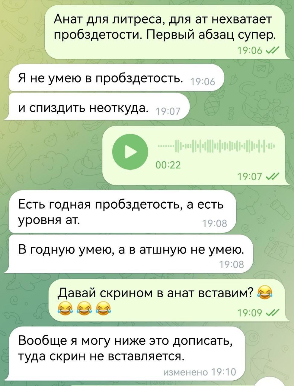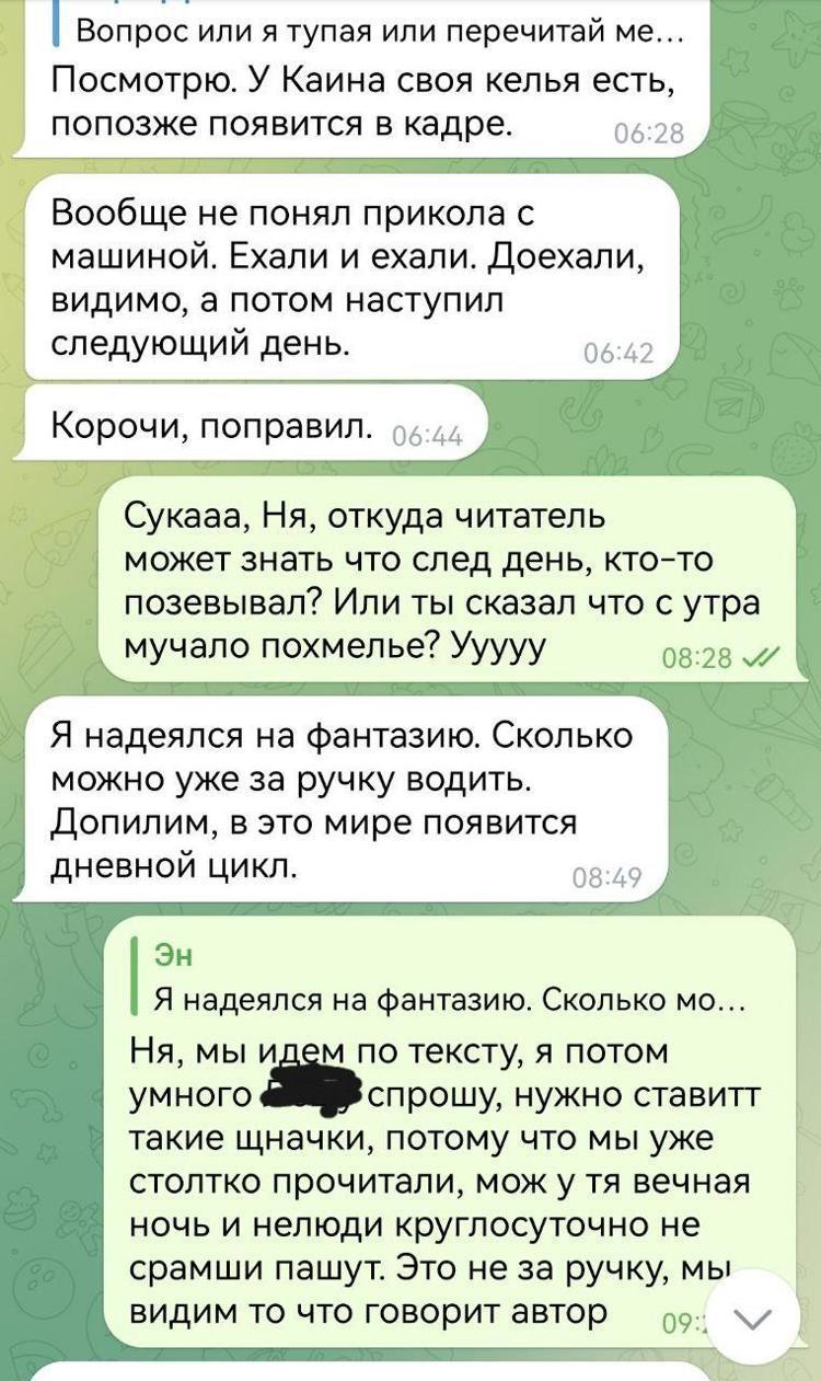 Прочитав главу, кинула, что скринами тут дело не пправишь, планируй вечерний эфир созвона. Вечер, я читаю главу в слух, отмечаю какие места поправить и тут мы дошли до лифчика.