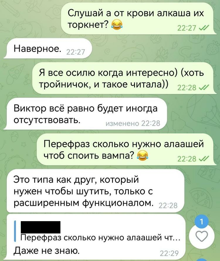 Б: — Я не пойду больше читать эту главу, что вы в ней найдете незнаю, если что я умыла руки, правки что увидела сказала.))